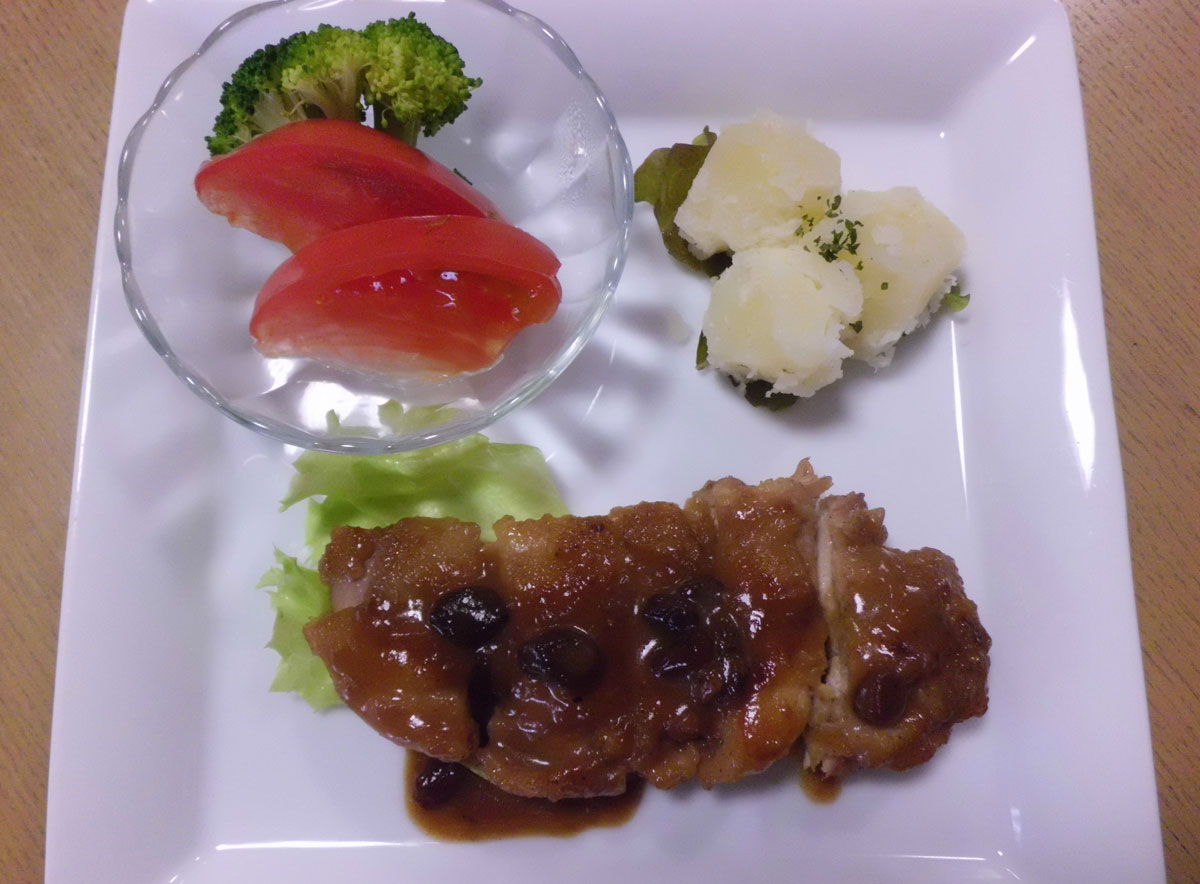 | 3 | 月 | 鶏肉とレーズンの赤ワイン煮 232kcal![]() イメージです。実際とは異なります。 |