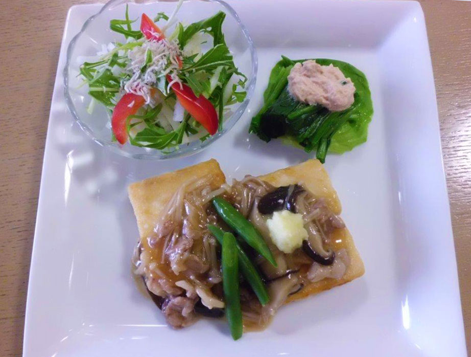 | 24 | 月 | 厚揚げと豚肉の味噌炒め 284kcal | 豆腐ステーキ 139kcal![]() イメージです。実際とは異なります。 |